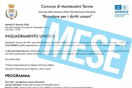 Montecatini Terme - In occasione della Giornata della Memoria, il Comune di Montecatini Terme, Città Patrimonio Mondiale Unesco, promuove per martedì 27…