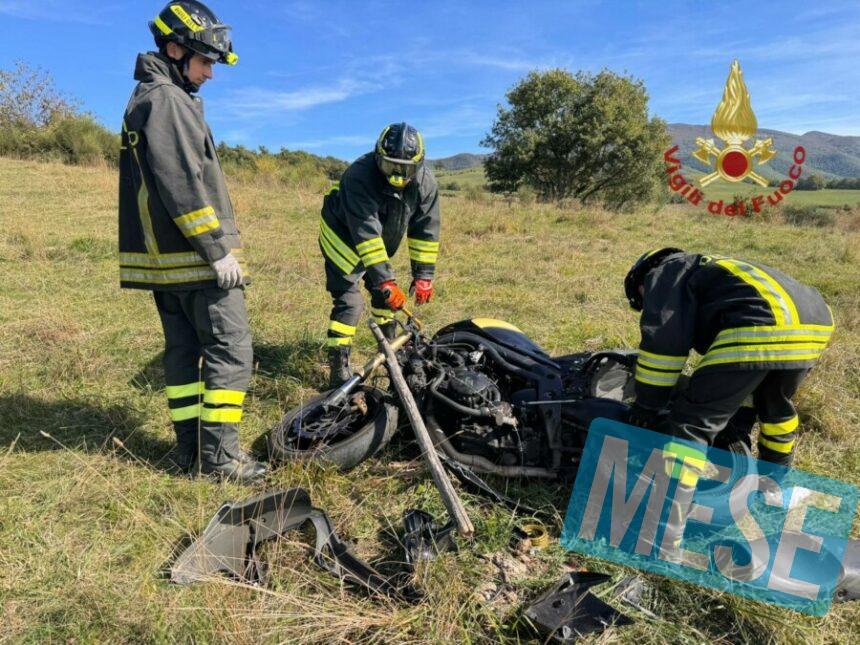 Finisce fuori strada con la moto, se la cava solo con uno spavento