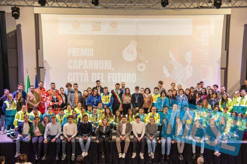 Capannori – Pubblico delle grandi occasioni ieri sera (martedì) ad Artè per la cerimonia di premiazione della seconda edizione del premio ‘Capannori, città del futuro’ istituito dall’amministrazione Del Chiaro nel 2024 per festeggiare i 201 anni dalla nascita del Comune di Capannori. Il premio è rivolto ai giovani capannoresi under 35 che si sono contraddistinti per l’impegno, il talento e le idee in vari ambiti. Sono stati consegnati 17 premi a giovani e realtà che si sono distinti per talento, impegno sociale, nuove idee, spirito imprenditoriale, e alle varie associazioni di appartenenza, per un totale di 146 premiati suddivisi in 4 categorie:categoria sport, categoria giovani imprenditori, categoria impegno sociale, categoria musica.