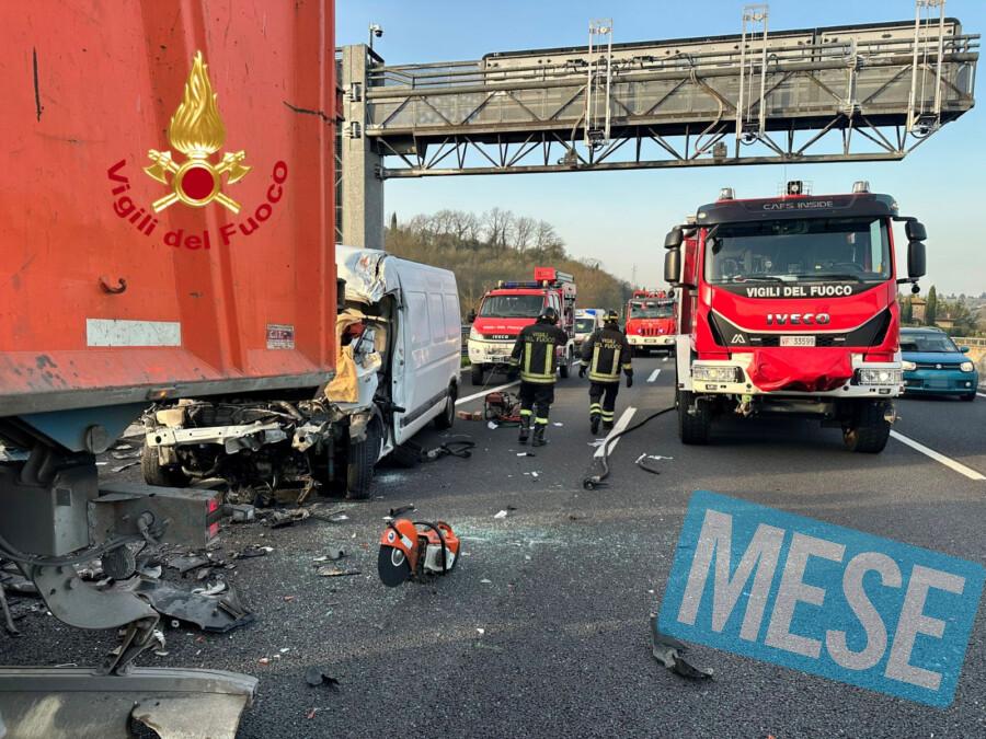 Impruneta – I Vigili del fuoco del comando di Firenze, distaccamento di Fi-ovest, sono intervenuti alle 07 nel comune di Impruneta, nel tratto autostradale A1 al km 299 direzione sud prima dell’uscita di Firenze Sud, per un incidente stradale che ha coinvolto un furgone che ha tamponato un mezzo pesante.