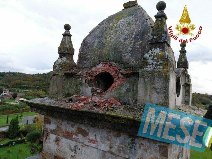 Il campanile colpito dal fulmine