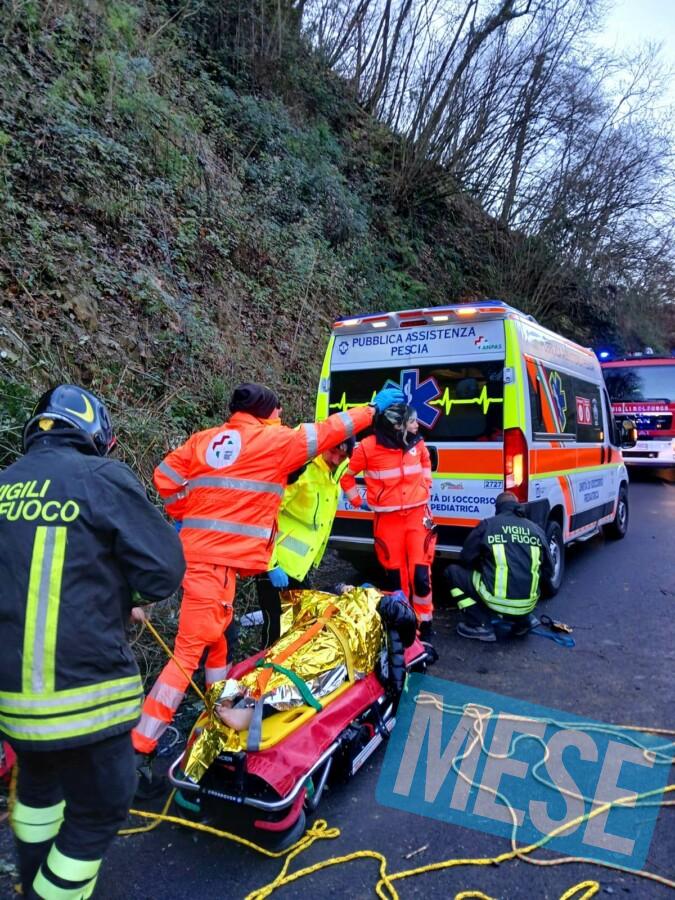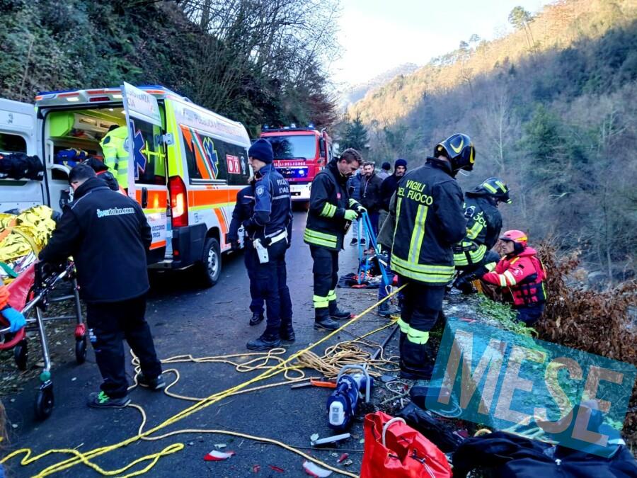 Forse un malore, forse un incidente tecnico, forse il ghiaccio; l’auto, una Fiat Panda vecchio modello, ha tirato dritto su una curva scendendo lungo via Mammianese, ed è precipitata in basso, saltando la sottostante strada provinciale della Val di Forfora.