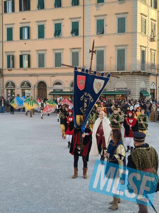 Per l’occasione, una delegazione composta da trenta tra figuranti, musici e sbandieratori della Lega dei Rioni ha rappresentato la città all’interno del suggestivo corteo storico, che ha attraversato la città dalla Terrazza Mascagni fino a Piazza della Repubblica. Un evento di grande impatto visivo ed emotivo, con oltre 1.700 figuranti in costume che hanno dato vita a una sfilata ricca di colori, storia e tradizione.
