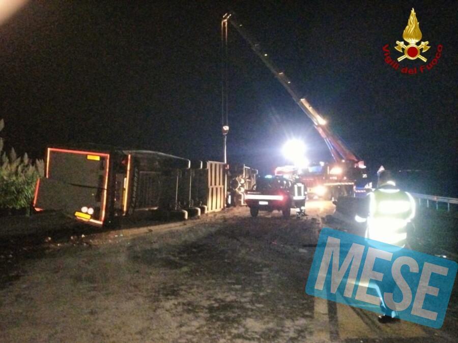 Un autoarticolato, per cause in corso di verifica da parte delle forze dell’ordine, è uscito di strada ribaltandosi su un fianco andando ad impattare sul guardrail.
