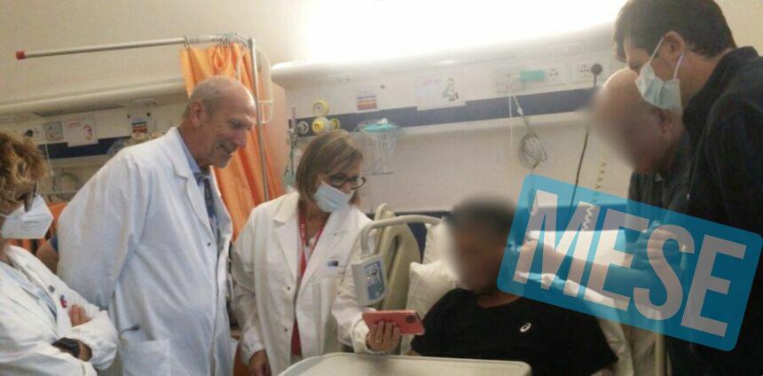 L’atleta ha così potuto vedere il video realizzato dalla propria squadra, che lo ha omaggiato con un simbolo di forza, unione e rispetto. Un gesto che ha profondamente commosso il ragazzo e il nonno, che nel frattempo lo ha raggiunto per stargli vicino, e che testimonia l’impegno costante dell’Asl Toscana centro nel promuovere l’umanizzazione delle cure.