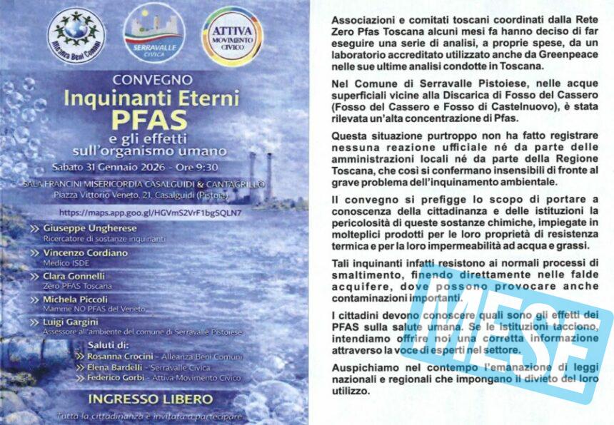 Serravalle Pistoiese – Sabato 31 Gennaio alle 9,30 nella sala della Misericordia di Casalguidi Pistoia ci sarà il convegno: “Inquinanti eterni PFAS e gli effetti sull’organismo Umano”