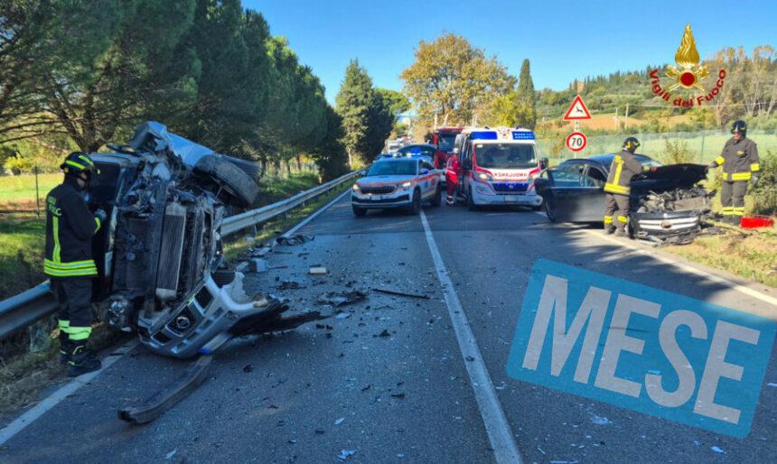 Arezzo – I Vigili del Fuoco del Comando di Arezzo sono intervenuti poco dopo le ore 13.00 sulla Strada Regionale 71, nei pressi di Policiano, a seguito di un incidente stradale che ha coinvolto due vetture, una delle quali si è ribaltata su un fianco.