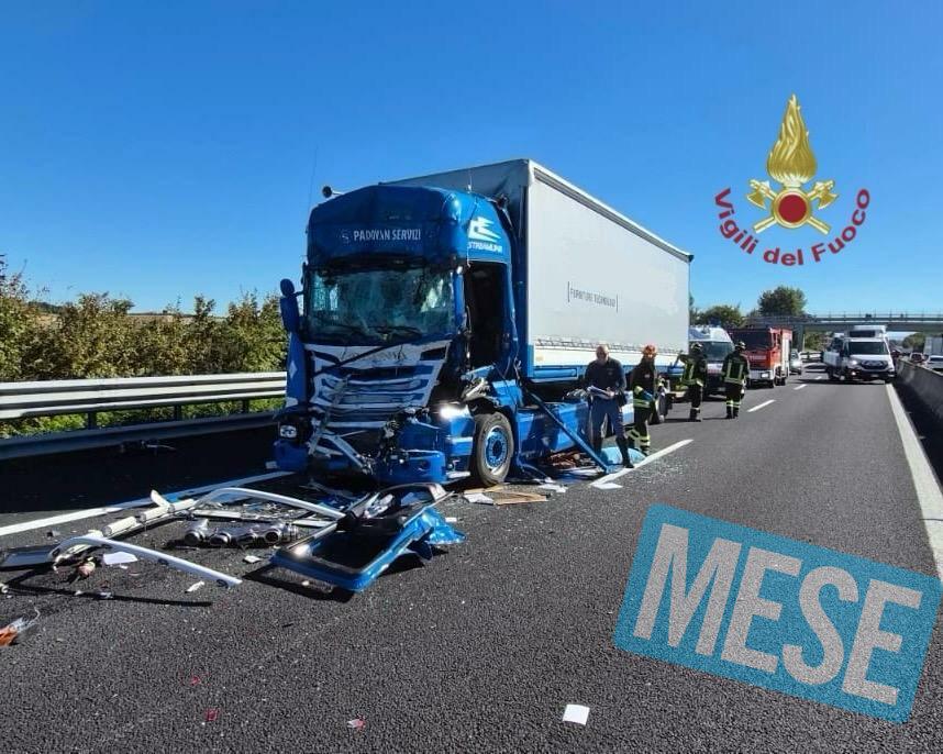 Nell’incidente sono rimasti coinvolti due mezzi pesanti che si sono tamponati.