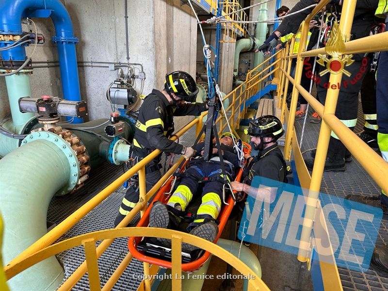 La seconda, eseguita giovedì 9 maggio presso il potabilizzatore di Nuove Acque a Poggio Cuculo, ha avuto luogo in un locale tecnico all’interno dell’impianto che offriva numerose possibilità di prove di salvataggio , tra cui il recupero di due vittime da un pozzo , uno recuperato con dispositivi in dotazione al personale di Nuove Acque e l’altro con cavalletto “cevedale” , attrezzatura per il recupero di persone in luoghi confinati. L’esercitazione è proseguita con la simulazione di altri due interventi per il recupero di persone in luoghi confinati con barella da recupero e corsetto estricatore.