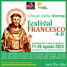 A ottocento anni dall’approvazione della regola Francescana e del primo presepe di San Francesco a Greccio, dall’11 al 20 agosto a Chiusi della Verna si svolgerà il festival Francesco 4.0 con un programma ambientato e contestualizzato nei luoghi e negli ambienti in cui visse il Santo.
