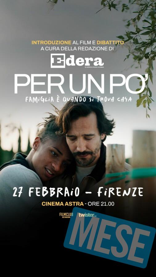Firenze – Edera Rivista porta i suoi letteri al cinema per la proiezione-evento della pellicola “Per un po’”. L’appuntamento è al cinema Astra di Firenze (in piazza Beccaria) venerdì 27 febbraio (ore 21).