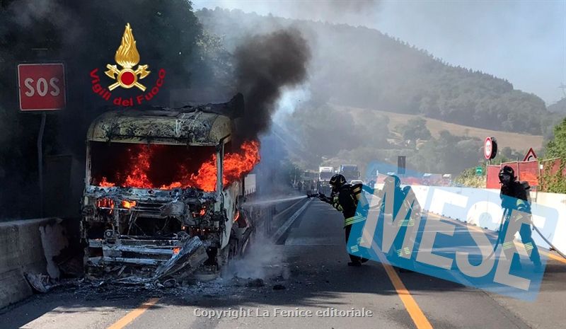 INCENDIO DI UN MEZZO PESANTE. DISAGI PER IL TRAFFICO