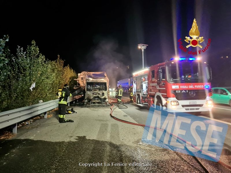 INCENDIO DI UN MEZZO PESANTE SULL’ AUTOSTRADA A1