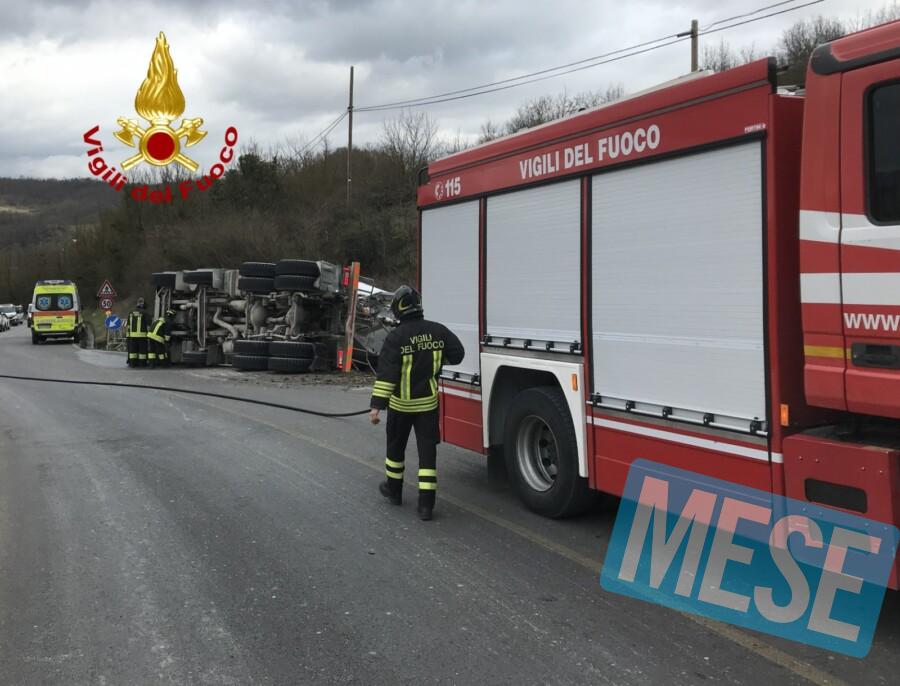 Barberino di Mugello – I Vigili del fuoco del comando di Firenze, distaccamento di Barberino di Mugello, sono intervenuti alle ore 12:15 nel comune di Barberino di Mugello in Via Cornocchio nei pressi di una struttura di ristorazione, in seguito ad un incidente stradale avvenuto tra due mezzi pesanti, dove in seguito all’urto il conducente di una betoniera carica di calcestruzzo, ha perso il controllo e si è ribaltata.