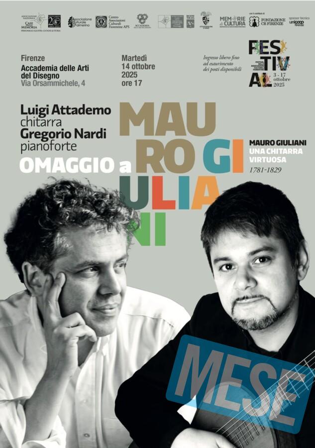 Firenze – Un approfondimento tra parole e note dedicato a uno dei più brillanti chitarristi e compositori di musica per chitarra del primo Ottocento, la cui musica è ancora annoverata fra le migliori composizioni classiche per chitarra. Si terrà martedì 14 ottobre (ore 17)negli spazi dell’Accademia della Arti del Disegno di Firenze (via Orsanmichele, 4) l’evento “Mauro Giuliani: una chitarra virtuosa” promosso dall’Associazione Nazionale Case della Memoria, in collaborazione con Associazione Culturale il Palmerino e Accademia delle Arti del Disegno, nell’ambito del Festival delle Associazioni Culturali Fiorentine.