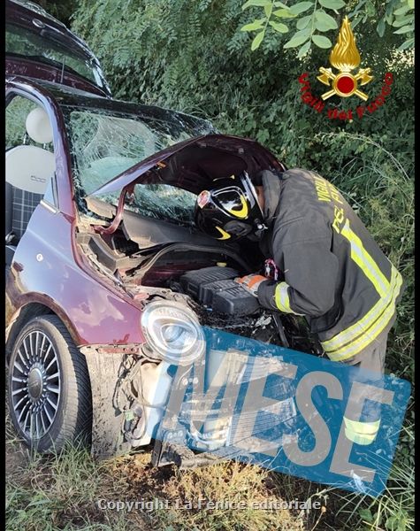 Un’ auto si è scontrata con un trattore e la conducente, rimasta incastrata all’interno dell’abitacolo, è stata estratta dal personale VF e poi affidata al personale sanitario del 118 per il successivo trasporto all’ospedale.