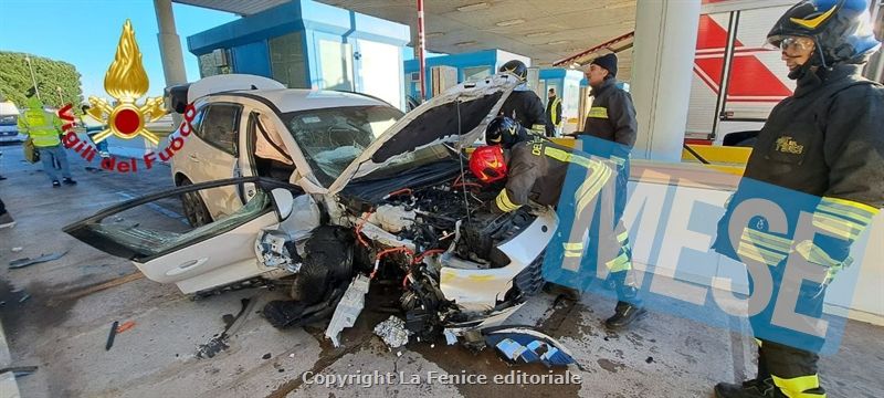 Una vettura, per cause in corso di accertamento, è finita contro la struttura del casello e il conducente, rimasto imprigionato all’interno, è stato estricato dal personale VF per poi essere affidato ai sanitari intervenuti sul posto.