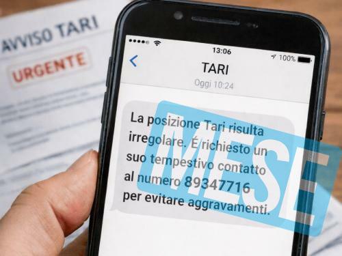 Il messaggio segnalato riporta un avviso di presunta irregolarità della posizione TARI e invita a contattare con urgenza un numero telefonico per evitare aggravamenti. Si raccomanda pertanto di non rispondere a tali messaggi, di non contattare i numeri indicati e di provvedere alla loro immediata cancellazione, segnalando l’accaduto alle autorità competenti.