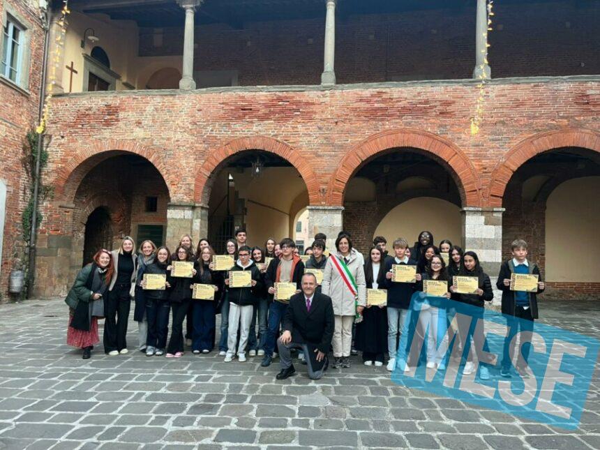 Altopascio – Anche quest’anno la comunità scolastica di Altopascio ha celebrato i risultati degli studenti della scuola media “G. Ungaretti”, che hanno concluso l’esame finale dell’anno scolastico 2024/2025 con pieni voti, distinguendosi per impegno, costanza e ottimi risultati. L’amministrazione comunale ha voluto premiare i 27 ragazzi che si sono diplomati con 9 e 10 e lode. La cerimonia si è tenuta ieri, martedì 9 dicembre, alla presenza del sindaco Sara DAmbrosio e dell’assessore alla scuola Valentina Bernardini.
