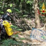 CICLISTA VA FUORI STRADA E FINISCE IN UN DIRUPO