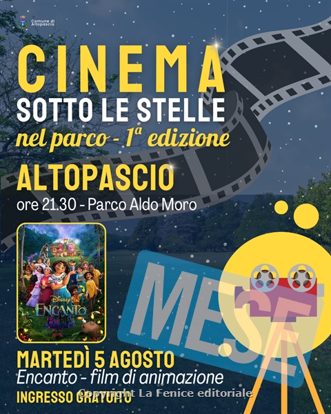 Altopascio – È il parco Aldo Moro lo spazio scelto dall’amministrazione comunale per l’appuntamento altopascese del cinema itinerante sul territorio. La programmazione è per martedì 5 agosto, alle 21.30, al parco Moro, con “Encanto”, il film di animazione proposto dal Cineforum Zero in condotta: l’ingresso è gratuito.