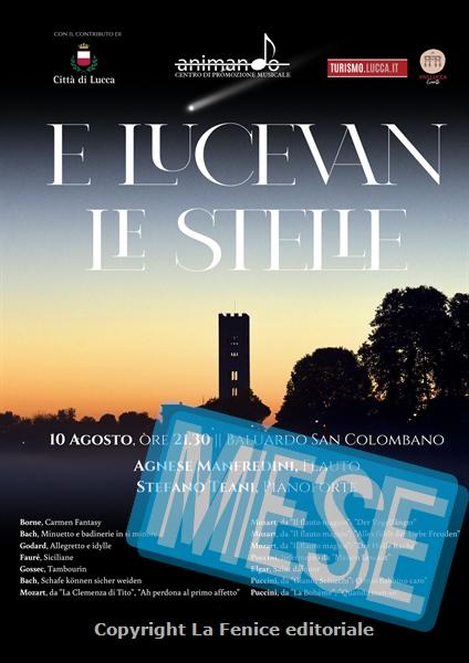 LUCCA- Saranno il flauto di Agnese Manfredini e il pianoforte di Stefano Teani i protagonisti dell’evento curato dal centro di produzione Animando nell’ambito di “E lucevan le stelle”, il cartellone musicale organizzato dal Comune di Lucca sulle Mura cittadine per celebrare la notte di San Lorenzo.