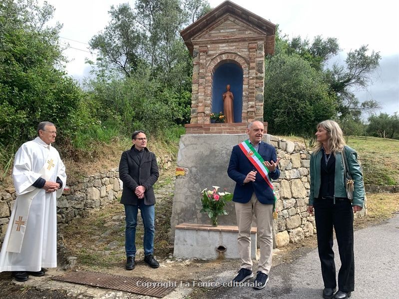 CAPANNORI – E’ avvenuta stamani (sabato) l’inaugurazione dell’opera ‘Vergine Annunciata’ collocata nella marginetta di San Pietro a Marcigliano in via di Segromigno in Monte realizzata da Edoardo Lencioni, studente del Liceo Artistico Musicale ‘A. Passaglia’ di Lucca guidato dal docente Nicola Biagini. Si tratta della prima opera artistica nata a seguito dell’accordo sottoscritto da Comune di Capannori, Soprintendenza Archeologica, Belle Arti e Paesaggio per le province di Lucca e Massa Carrara e liceo ‘A. Passaglia’ con l’obiettivo di tutelare e valorizzare il territorio di Capannori con un progetto, ‘ La via delle Marginette’, che vede protagoniste le marginette o edicole sacre edificate lungo le strade e nei crocevia. La prima marginetta che segna l’inizio del programma di interventi è quella di San Pietro a Marcigliano, già restaurata nella parte strutturale grazie all’impegno dell’associazione PerSanPietro con il contributo del Comune di Capannori nel 2022. La collocazione della scultura della Vergine continua il processo di recupero e valorizzazione a cui seguirà un’operazione di sensibilizzazione e comunicazione.
