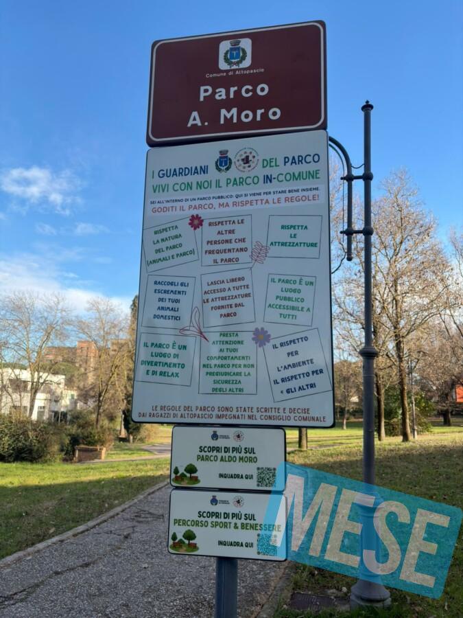 Ogni cartello contiene schede tematiche dedicate a natura e paesaggio, servizi e arredi, sport e movimento, relax e tempo libero, accessibilità, giochi e svago, oltre a consigli per una corretta fruizione degli spazi verdi. Il progetto comprende anche un percorso su tre parchi (Aldo Moro, Caduti della Polizia di Stato e Unità d’Italia) pensato per attività all’aria aperta, con schede che possono guidare allo svolgimento degli esercizi di ginnastica.