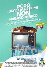 Nello spot, vediamo un uomo con il suo cane sul divano, davanti alla TV. La voce fuori campo dice: “Ah quante belle serate hai passato sul divano con il tuo amico davanti al televisore, ora che è diventato vecchio non abbandonarlo”. Tutti noi pensiamo ovviamente che lo speaker si riferisca al cane, invece scopriamo che l’uomo deve sbarazzarsi… del vecchio televisore. Anche la campagna statica gioca sullo stesso equivoco: una multisoggetto ci mostra un cane accovacciato su una vecchia lavatrice, su un’aspirapolvere, su un vecchio frigorifero e con in bocca una vecchia lampada. Anche qui il titolo dice: “Dopo una vita assieme, non abbandonarlo. Smaltisci correttamente il tuo televisore/aspirapolvere… Non costa nulla”.