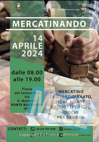 PONTE BUGGIANESE – Domani domenica 14 aprile dalle ore 8.30 alle ore 19.00 nel centro del paese si svolgerà “Mercatinando”, prima edizione di un mercato di filiera corta, dell’artigianato, del riuso, di prodotti tipici locali, piante e fiori e con la presenza di giochi per bambini, gonfiabili e truccabimbi svolta in collaborazione con l’associazione Mamò e Clarte.