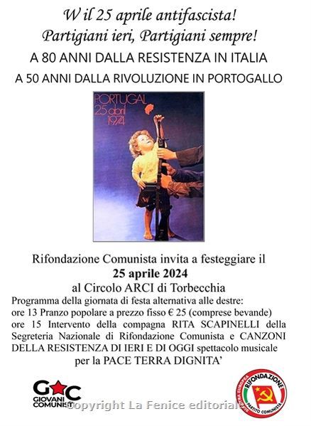 PISTOIA – I princìpi democratici fondativi della nostra Repubblica sono sotto attacco nella forma (l’autonomia differenziata e il presidenzialismo) e nella sostanza (la limitazione della libertà di stampa, gli attacchi alla salute con i tagli per i fondi per la Salute pubblica, la limitazione del diritto di sciopero e di manifestazione). Mentre l’Europa fa la scelta dell’oltranzismo atlantista, della guerra, del riarmo, dell’industria bellica come “pilastro” e l’Italia si adegua, con consenso bipartisan (visto che votano tutti a favore del riarmo) giova ricordare che per noi comunisti, l‘articolo 11 della Costituzione è forse l’eredità più importante della Resistenza antifascista. Noi siamo contro la guerra, contro tutte le guerre che stanno facendo scivolare l’Europa e il mondo intero verso la catastrofe di un conflitto mondiale generalizzato del quale anche noi ne faremo parte. Ci piace invece ricordare che l’ultima rivoluzione antifascista in Europa, di cui ricorre proprio il 25 aprile 2024 il 50° anniversario, la Rivoluzione portoghese, fu una rivoluzione gentile dove non si sparò un solo colpo di fucile e dove nacque uno strettissimo legame tra popolo ed esercito verso la transizione alla democrazia. Per questo, nonostante tutto, per noi il 25 aprile è un giorno di festa! E anche quest’anno diamo appuntamento – grazie al supporto tecnico del Circolo ARCI di Torbecchia – agli antifascisti e ai democratici per una festa antifascista con pranzo popolare alle 13, seguito alle 15 da un intervento della compagna Rita Scapinelli responsabile nazionale Antifascismo di Rifondazione Comunista e uno spettacolo musicale di canti partigiani. Per prenotazioni, tel. 0573 477000 – 345 8191075.