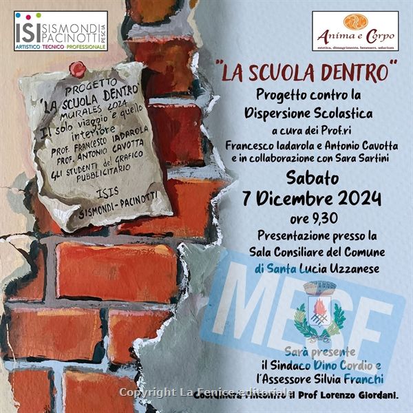 PESCIA – Rivolto a tutti gli alunni e le alunne dell’Istituto, il Progetto “La Scuola Dentro” del Sismondi-Pacinotti si è articolato con lo scopo di integrarsi a tutte le attività indirizzate al sostegno, prevenzione e disagio adolescenziale e alla lotta contro la dispersione scolastica, offrendo spazi di ascolto e riflessione come crescita formativa. Il percorso ha avuto principalmente due fasi: una prima parte socio-educativa, che ha avuto come scopo quello di sostenere ed incoraggiare gli studenti e le studentesse rafforzando il concetto di responsabilità delle proprie scelte, nei propri confronti e verso gli altri. Una seconda parte grafica in cui i ragazzi hanno realizzato un murales presso il Centro Estetico “Anima e Corpo” situato in Santa Lucia Uzzanese in sinergia con Sara Sartini, titolare del centro.