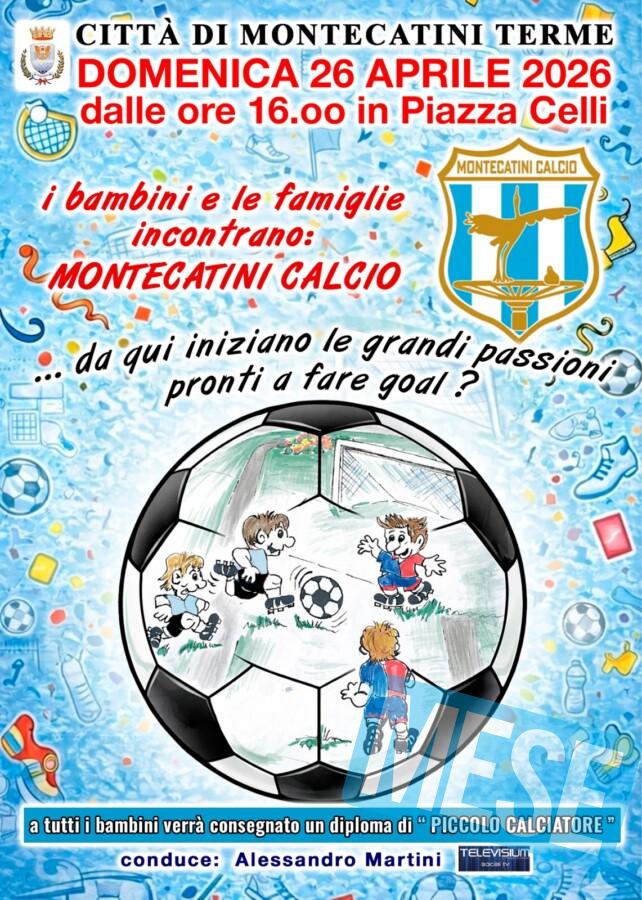 Domenica 26 aprile, al mattino, sarnno disponibili la parete e il gonfiabile per l’arrampicata, il jumping a altri giochi e, dalle ore 16 in poi, i bambini ed i loro accompagnatori saranno ricevuti dagli istruttori e dal personale del MONTECATINI CALCIO per giocare , tutti insieme , alla ricerca del goal più bello, quello che fa sognare !