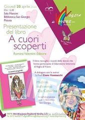 Giovedì 20 aprile, alle 15.30, nella Sala Manzini della Biblioteca San Giorgio, verrà presentato il libro A cuori scoperti, curato dall’Associazione Voglia di Vivere. Il testo raccoglie i ricordi delle otto donne che hanno partecipato all’Atelier della parola, laboratorio letterario di narrazione terapeutica.
