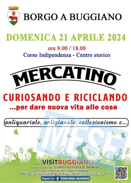 BORGO A BUGGIANO – Domenica 21 aprile, terza domenica del mese, torna a Borgo a Buggiano, in corso Indipendenza e nel centro storico, puntuale e molto atteso, il mercatino “CURIOSANDO e RICICLANDO …per dare nuova vita alle cose” .