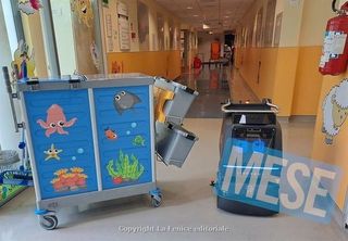 Pistoia – Pediatria sempre più a “misura di bambino” al San Jacopo. La Ditta incaricata dal Concessionario per l’esecuzione del servizio di Pulizia, su iniziativa del personale sanitario della direzione sanitaria del presidio e in accordo con quest’ultima, ha introdotto un apposito carrello per le pulizie che, oltre ad essere dotato di dispositivi di sicurezza specifici, porta colore e allegria in corsia, e quindi rappresenta un momento ludico per i piccoli degenti. Ma la vera novità è data dalla presenza, nel pomeriggio, di “Priscilla”, il piccolo robot che mentre provvede alla sanificazione dei corridoi interni emette una gradevole melodia inviando baci, cuori e faccine colorate.