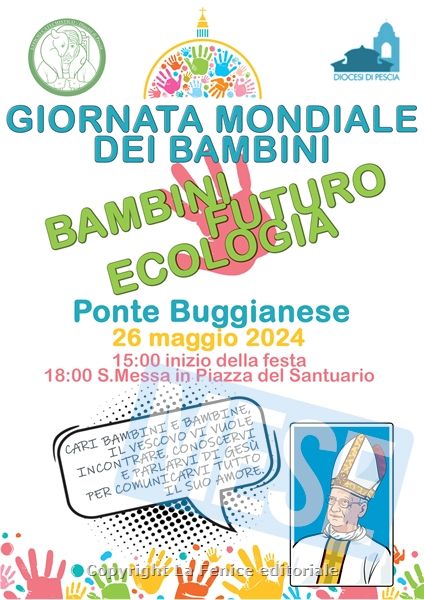 Ovviamente non tutti potranno essere presenti a Roma, ma non per questo l’appello a fare festa con i bambini e le bambine può cadere nel vuoto. La diocesi di Pescia quindi si è organizzata per un pomeriggio di festa parlando di bambini, ecologia, futuro. L’equipe dell’Ufficio diocesano catechistico, guidata da don Fabiano Fedi, presenta così la giornata: «Sarà l’occasione di conoscere altri che stanno facendo il nostro stesso cammino di crescita nella nostra Chiesa locale, di condividere e anche di fare piccole esperienze. Sarà un pomeriggio gioioso, saranno proposte molte esperienze di gioco e di creatività, con uno sguardo al futuro e al rispetto del creato che ci è stato affidato, ci saranno musica e danze, e un momento di celebrazione presieduto dal vescovo Fausto. Perché è importante ricordarci che quando siamo riuniti, anche solo in due Gesù è con noi, ma quando siamo in tanti la gioia della sua presenza è ancora più tangibile».