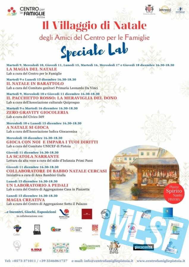 Pistoia – Il Centro per le Famiglie di Pistoia si prepara a vivere un dicembre speciale, ricco di eventi e iniziative pensate per rendere le feste natalizie un momento di gioia, condivisione e creatività per tutte le famiglie del territorio. Anche quest’anno torna il tradizionale Villaggio di Natale degli Amici del Centro per le Famiglie, accompagnato da un ricco programma di laboratori, incontri e attività pensate per bambini, genitori e famiglie.