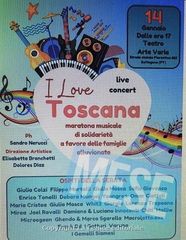 PISTOIA – È in programma domenica 14 gennaio al Teatro Arte Varia “I love Toscana”, la maratona musicale nata da un’idea di Elisabetta Branchetti con il coinvolgimento di 38 artisti che animeranno la giornata a partire dalle 17 fino a tarda serata. Alla direzione artistica la stessa Branchetti, con la collaborazione di Maria Dolores Diaz.
