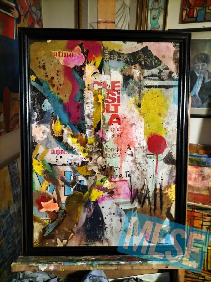 Nelle opere in esposizione, la ricerca del nuovo si concretizza attraverso l’uso di materiali di recupero e frammenti di manifesti murali. Questa stratificazione non è un semplice vezzo stilistico, ma un gesto concettuale che mira a dare forma visibile al “disordine mediatico” che caratterizza la nostra epoca. Attraverso l’inserimento di brandelli di comunicazione urbana, Giannini trasforma il caos di immagini e informazioni che satura il quotidiano in una lucida testimonianza artistica, invitando lo spettatore a rintracciare un nuovo equilibrio estetico e intellettuale.