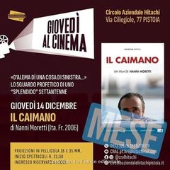 PISTOIA – Penultimo appuntamento in cartellone per “Giovedì al cinema” al Circolo Aziendale Hitachi: giovedì 14 sul grande schermo di via Ciliegiole sarà proiettato “Il Caimano”, ultima pellicola della rassegna dedicata al cinema di Nanni Moretti.