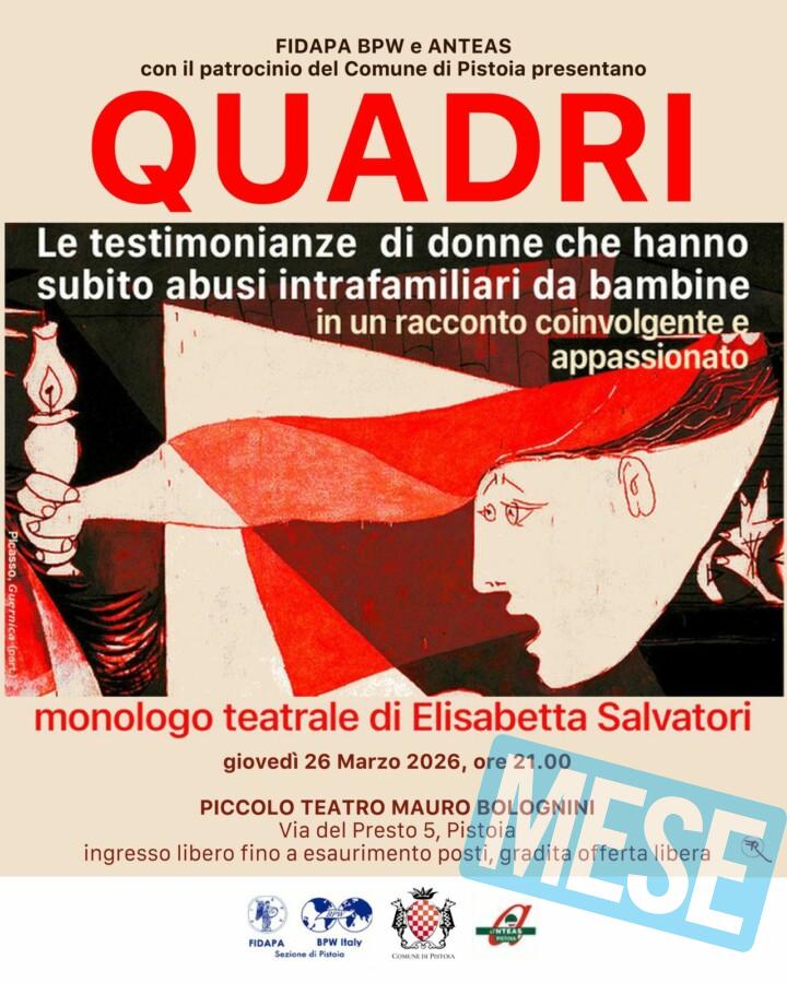 L’iniziativa è organizzata da Fidapa BPW e Anteas, con il patrocinio del Comune di Pistoia.