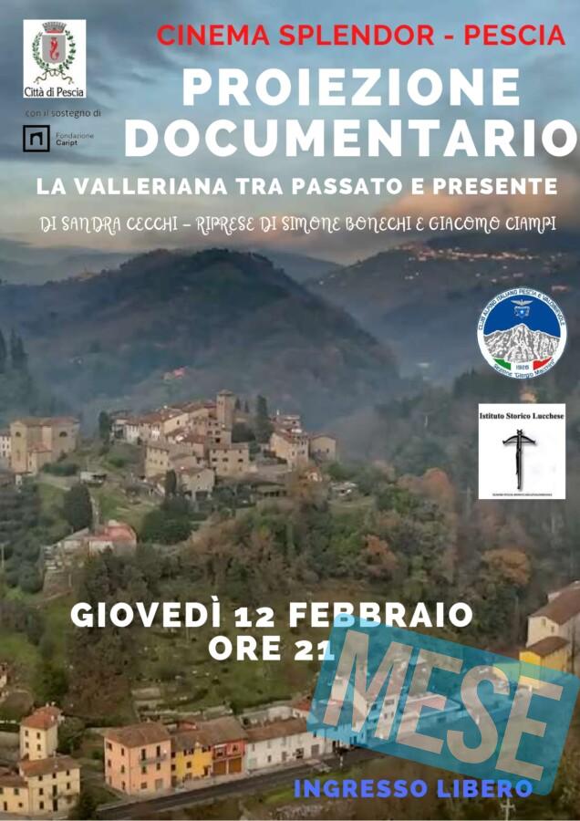Pescia – Giovedì 12 febbraio alle ore 21, presso il Cinema Splendor di Pescia si terrà la proiezione, in prima assoluta, del documentario Valleriana tra passato e presente di Sandra Cecchi (riprese di Simone Bonechi e Giacomo Ciampi). Il documentario, che presenta immagini inedite della Valleriana vista dall’occhio di un drone, tratta degli aspetti culturali, storici, enogastronomici e naturalistici della montagna pesciatina. Sarà presente l’autrice, Sandra Cecchi, giornalista professionista che vive in Valdinievole e che per lungo tempo ha lavorato per la RAI occupandosi di cronaca, costume e di esteri. Introdurrà la serata, dopo i saluti istituzionali, Dario Donatini, direttore della sezione Pescia-Montecarlo-Valdinievole dell’Istituto storico Lucchese. L’ingresso è libero.