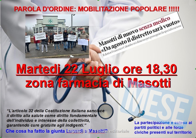 SERRAVALLE PISTOIESE – Il 22 luglio p.v., alle ore 18.30, davanti al distretto sociosanitario di Masotti (Serravalle Pistoiese) è prevista una manifestazione organizzata dal gruppo dei cittadini che ha promosso la petizione contro il suo depotenziamento e la sua chiusura. Lo scopo è quello di sollecitare l’amministrazione comunale- ad oggi solo “parolaia” e inadempiente- a impegnarsi concretamente per il ripristino, presso detto distretto, dell’assistenza medica di base e per il potenziamento e ampliamento dei servizi sociosanitari. La partecipazione è aperta, oltre che alla cittadinanza, anche alle forze politiche e civiche presenti sul territorio, che vogliamo sperare sensibili a tale problematica.
