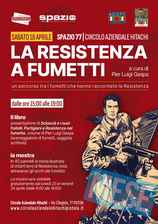 Pistoia – Un viaggio nella storia partigiana italiana visto attraverso il linguaggio del fumetto: appuntamento sabato 18 aprile allo Spazio 77 del Circolo Aziendale Hitachi di Pistoia con “La Resistenza a fumetti”, a cura di Pier Luigi Gaspa, sceneggiatore e saggista, uno dei massimi esperti nazionali di storia e critica del fumetto.