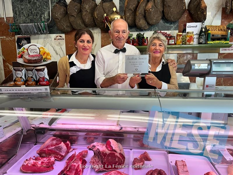 PISTOIA – Il mondo era alquanto diverso nel 1974 e, in mezzo secolo di storia, di cose ne sono successe molte, anche nella piccola frazione di Bonelle. Un punto però è rimasto sempre ben saldo: per cinquant’anni di fila la Macelleria dei coniugi Dino Gavazzi ed Emma Frosini ha aperto le sue serrande in via Bonellina, servendo ininterrottamente il paese. Lunedì 14 ottobre, in occasione dello speciale anniversario, Confcommercio ha consegnato una targa ai titolari per celebrare il traguardo.