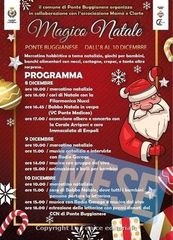 PONTE BUGGIANESE – L’amministrazione Comunale, in collaborazione con l’Associazione Mamo’ e Clarte, organizza per le giornate dell’8, 9 e 10 dicembre la manifestazione natalizia “Magico Natale”. A partire dalla mattina dell’8 dicembre e per tutto il fine settimana il centro del paese ospiterà il mercatino degli Artigiani di Pandora, hobbisti non professionali locali ed associazioni. L’atmosfera del Magico Natale inizierà dal primo pomeriggio dell’8 dicembre, quando arriveranno in piazza i musicisti, i giochi per bambini e gli intrattenimenti musicali e tantissime altre sorprese della Filarmonica Ferruccio Nucci, della Corale Arrigoni, del Coro Immacolata di Empoli e Babbo Natale a bordo del suo vecchio ape calessino; sarà proprio lui ad accendere l’albero donando cioccolate e caramelle per tutti i bambini .