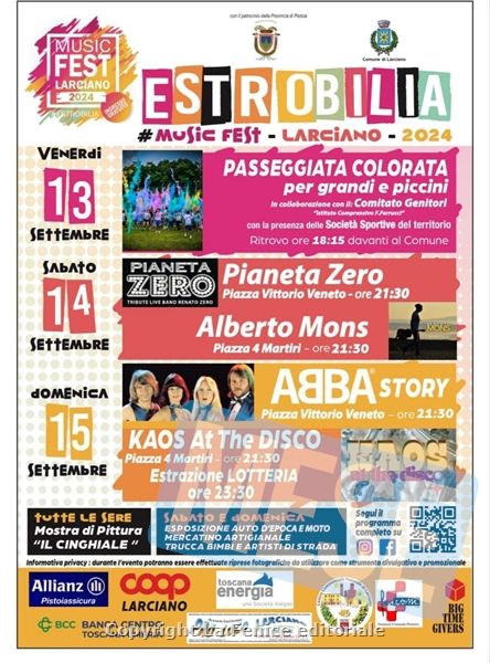 PISTOIA – Il Comune di Larciano organizza anche per l’anno 2024 la manifestazione “Music