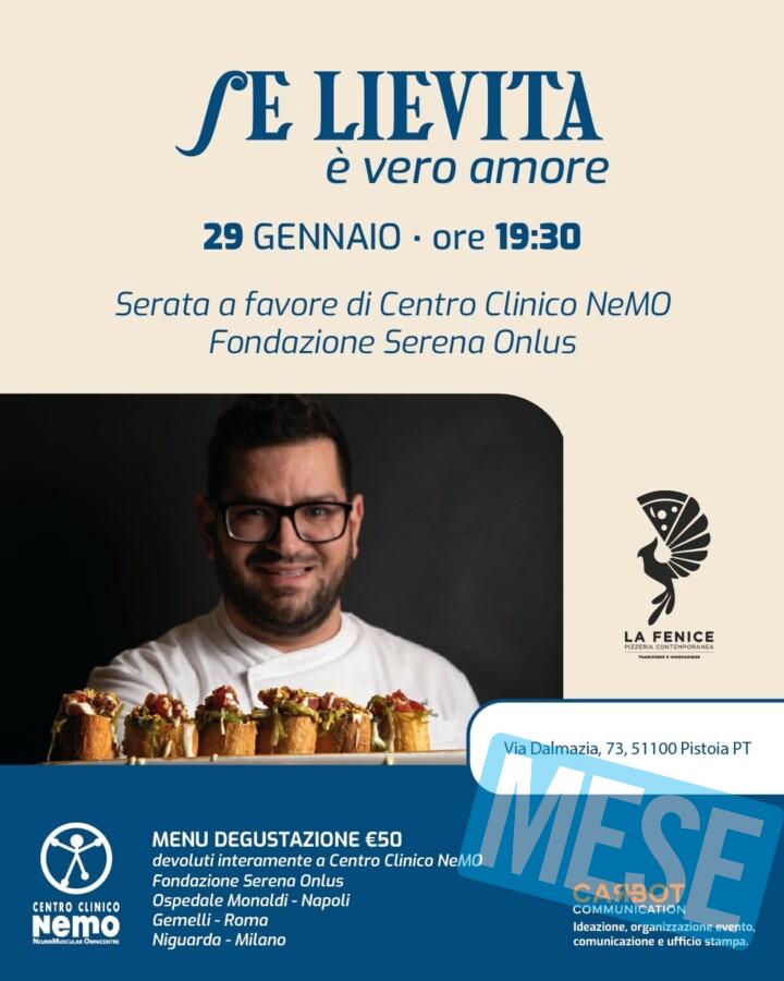 Pistoia – Pistoia e Napoli nel segno della solidarietà. Doppio appuntamento giovedì 29 gennaio con “Se lievita è vero Amore”: l’iniziativa benefica farà tappa in contemporanea a La Fenice Pizzeria Contemporanea di Manuel Maiorano a Pistoia e da Raf Bonetta Pizzeria, a Napoli.