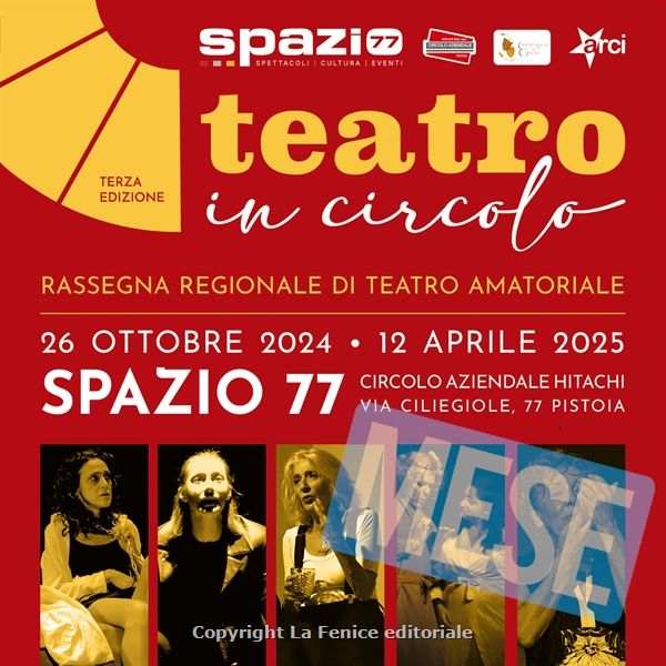 PISTOIA – Allo Spazio 77 del Circolo Aziendale Hitachi torna il teatro amatoriale con la terza edizione della rassegna “Teatro in Circolo”. In tutto nove spettacoli, in programma a partire da sabato 26 ottobre fino al 12 aprile 2025, ai quali si alterneranno i sette appuntamenti del secondo “Campionato di Pistoia” di improvvisazione teatrale. Un totale di sedici serate che fino alla prossima primavera animeranno il sabato sera del salone auditorium di via Ciliegiole e che potranno essere seguite anche sottoscrivendo un abbonamento congiunto.